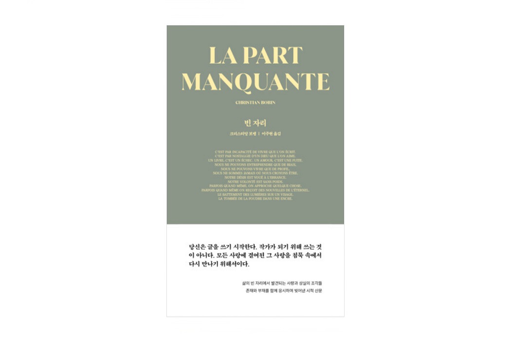 사랑을 말한다. 그것은 대개 이미 지나가고 떠나가 버린 것들에 대한 상념에서 출발한다. 하지만 그 텅 빈 자리에서 할 수 있는 일이란 그리 많지 않다. 그저 삶과 사랑을 대하는 태도 안에서 자기가 마주한 시간들을 헤아려볼 뿐. 그 가운데서 유년의 자기 자신을 만난다. 흘려보낸 모든 것들을 떠올리며 ‘무(無)’가 지닌 영원성에 가닿기 위한 삶을 살아가겠다고 다짐도 해본다. 그것은 곧 독서하며 글을 쓰는 삶일 수도 있겠다. “독서란 피의 유치원에서 스스로에 대해 배우는 것이”(p.25)고, “글을 쓴다는 것은 남아서 눅눅해진 시간을 조리하는 것이”(p.112)라 여기면서. 어쩌면 그 행위는 — 존재했으나 존재하지 않는 것들로 채워진 — 삶에 대한 찬미의 기도와 다름없으리라. 그렇게 우리는 저마다의 빈 자리를 응시하는 가운데 애도와 축복이라는 서로 다른, 아니면 같을지도 모르는 시간을 보내며 삶을 이어간다.